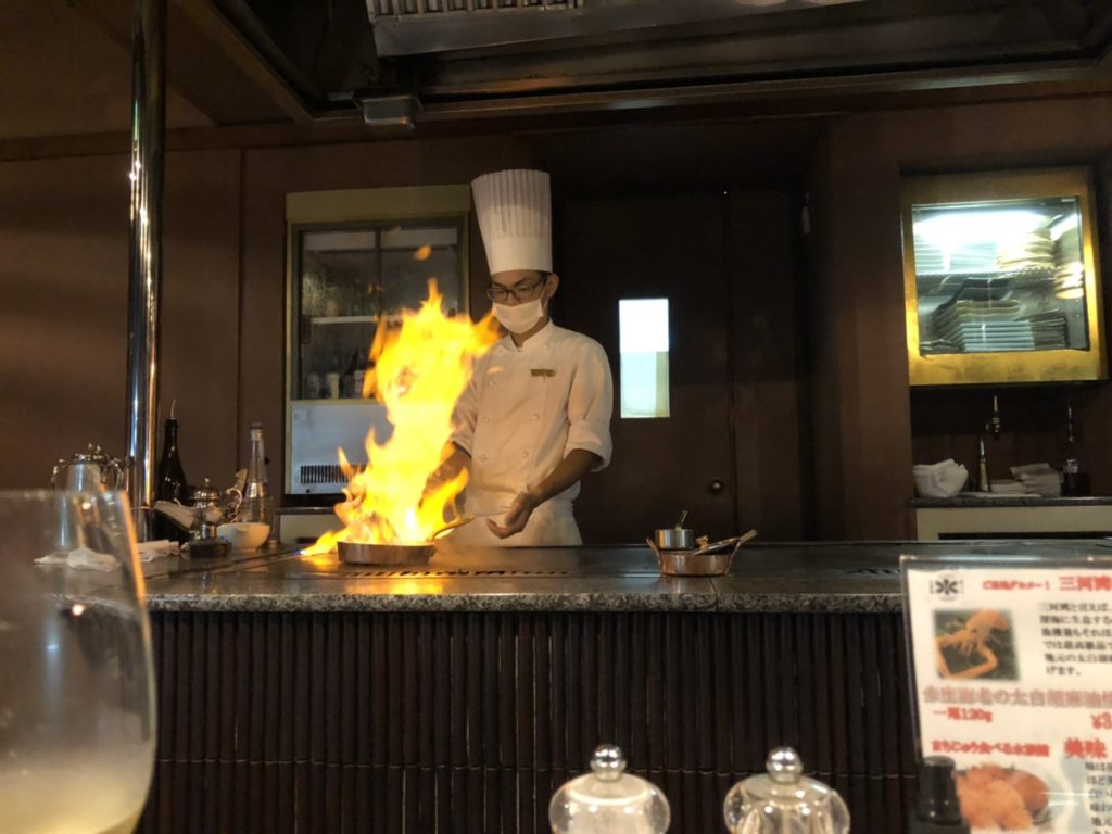 今回のお客様のお食事は、特選牛や旬の魚介類をシェフがお客様の目の前で焼き上げてくれる「六角堂」というレストランでのご夕食でしたが、フランス料理の「メインダイニングルーム」、ステーキ&シーフードの「六角堂」、和食料亭の「竹島」と3つの夕食会場があり、予約の際にお選びいただけます。他にラウンジとして「アゼリア」があり、食後にいかがですか?